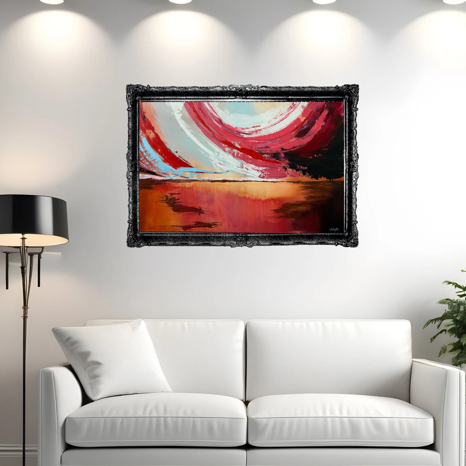 Part of the Fire and Ice collection, "Euphony of Motion" captures the elemental contrasts of Iceland — blazing heat and crystalline cold, turbulence and calm. Vivid crimsons and fiery ochres clash with icy blues and cool whites, layered with sweeping palette-knife textures that echo lava flows, glacial ridges, and storm-laden skies. The canvas seems to breathe, inviting the viewer to step into its rhythm and feel the hush and roar of Iceland’s wild expanse.